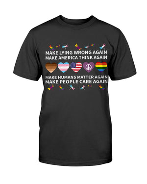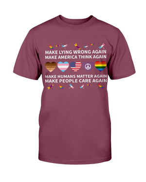 Make Lying Wrong Again Make America Think Again Make Humans Matter Again Make People Care Again Heart Symbol and Dragonfly LGBTQ Shirt.