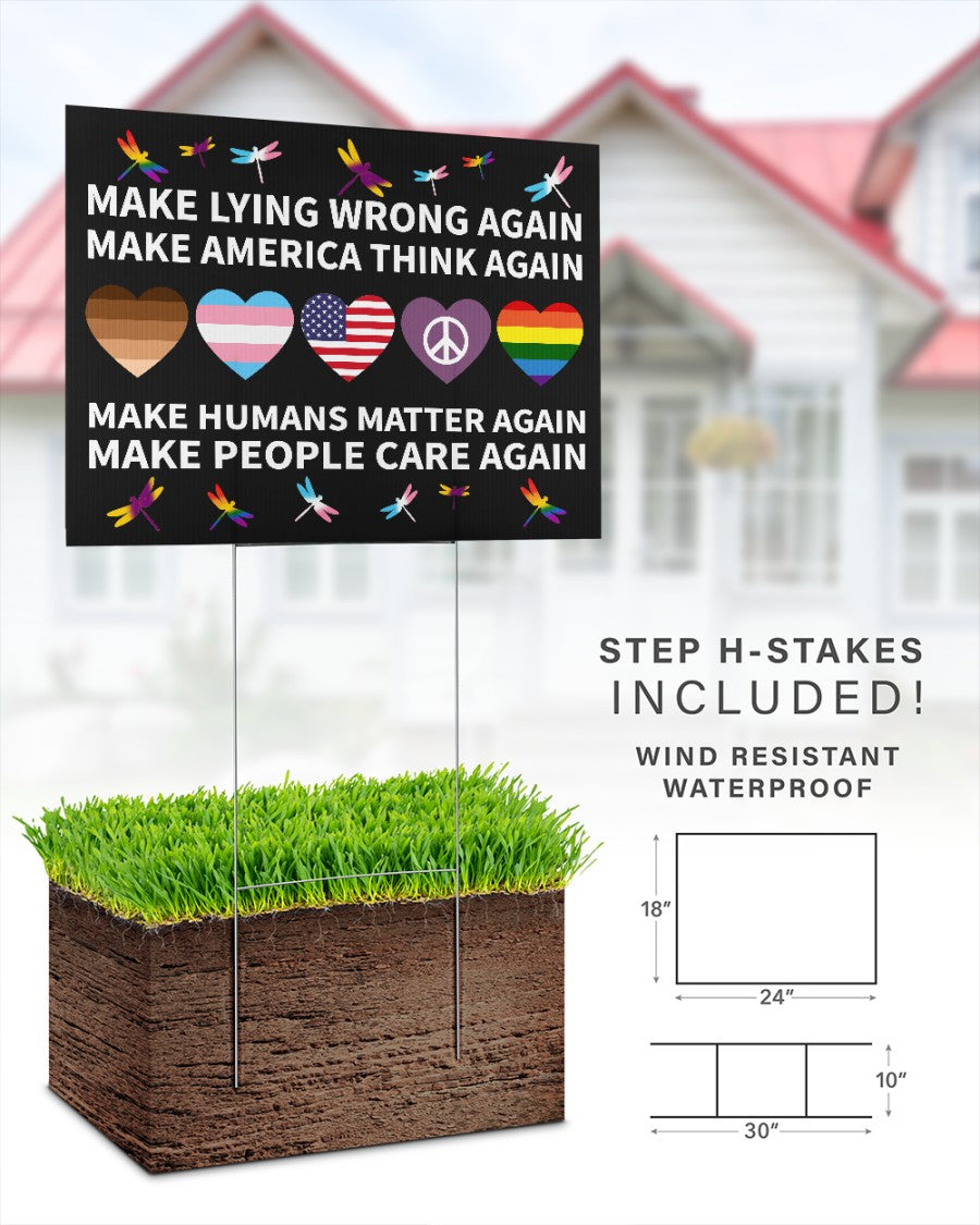Make Lying Wrong Again Make America Think Again Make Humans Matter Again Make People Care Again Heart Symbol and Dragonfly LGBTQ Shirt.