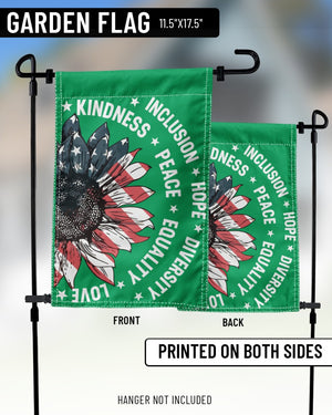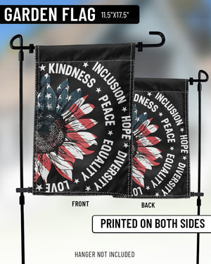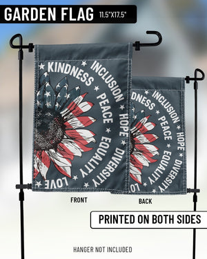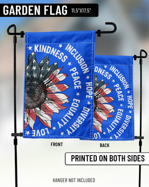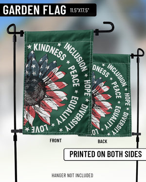 Kindness Peace Equality Love Inclusion Hope Diversity Garden Flag