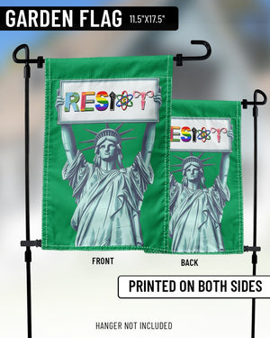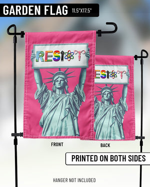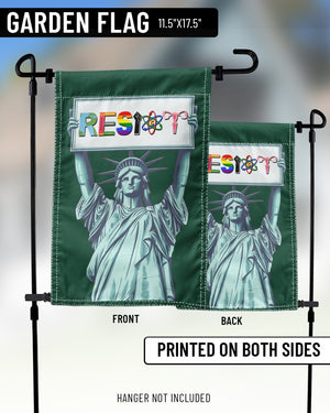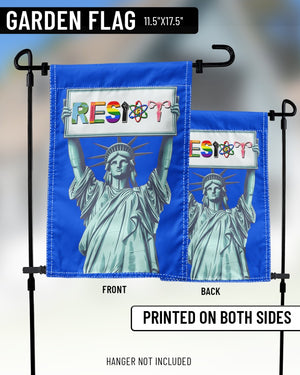 Display your principles proudly with our "Resist Liberty" garden flag! This eye-catching flag features a striking depiction of the Statue of Liberty, symbolizing freedom and resistance, enhanced with colorful text and diverse symbols promoting peace and inclusivity. Crafted from durable, weather-resistant materials, it's perfect for both outdoor and indoor settings. Make a bold statement in your garden or at your front door and stand up for what you believe in with this powerful decor piece.