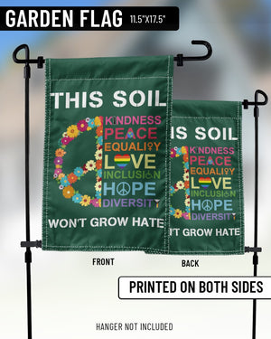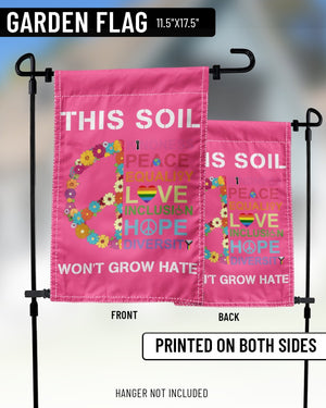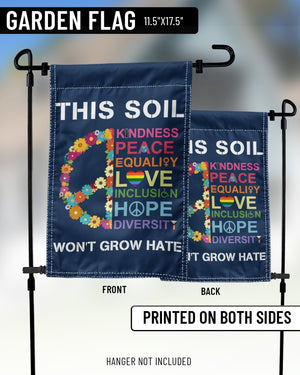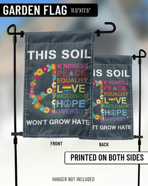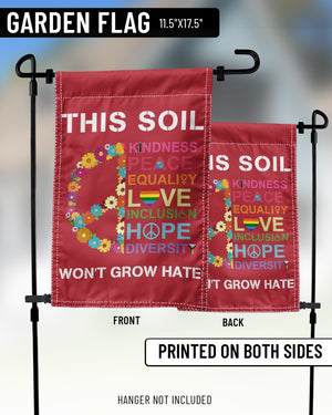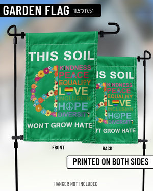 This garden flag delivers a powerful message of unity and acceptance. The design features the bold text “THIS SOIL WON’T GROW HATE” along with a colorful peace symbol made of flowers. Inside the design are inspiring words: “KINDNESS • PEACE • EQUALITY • LOVE • INCLUSION • HOPE • DIVERSITY.” Perfect for showing support of love over hate, this flag brings pride, positivity, and inclusivity to any yard or garden. A meaningful gift for women over 55, activists, and anyone who believes in justice and compassion.