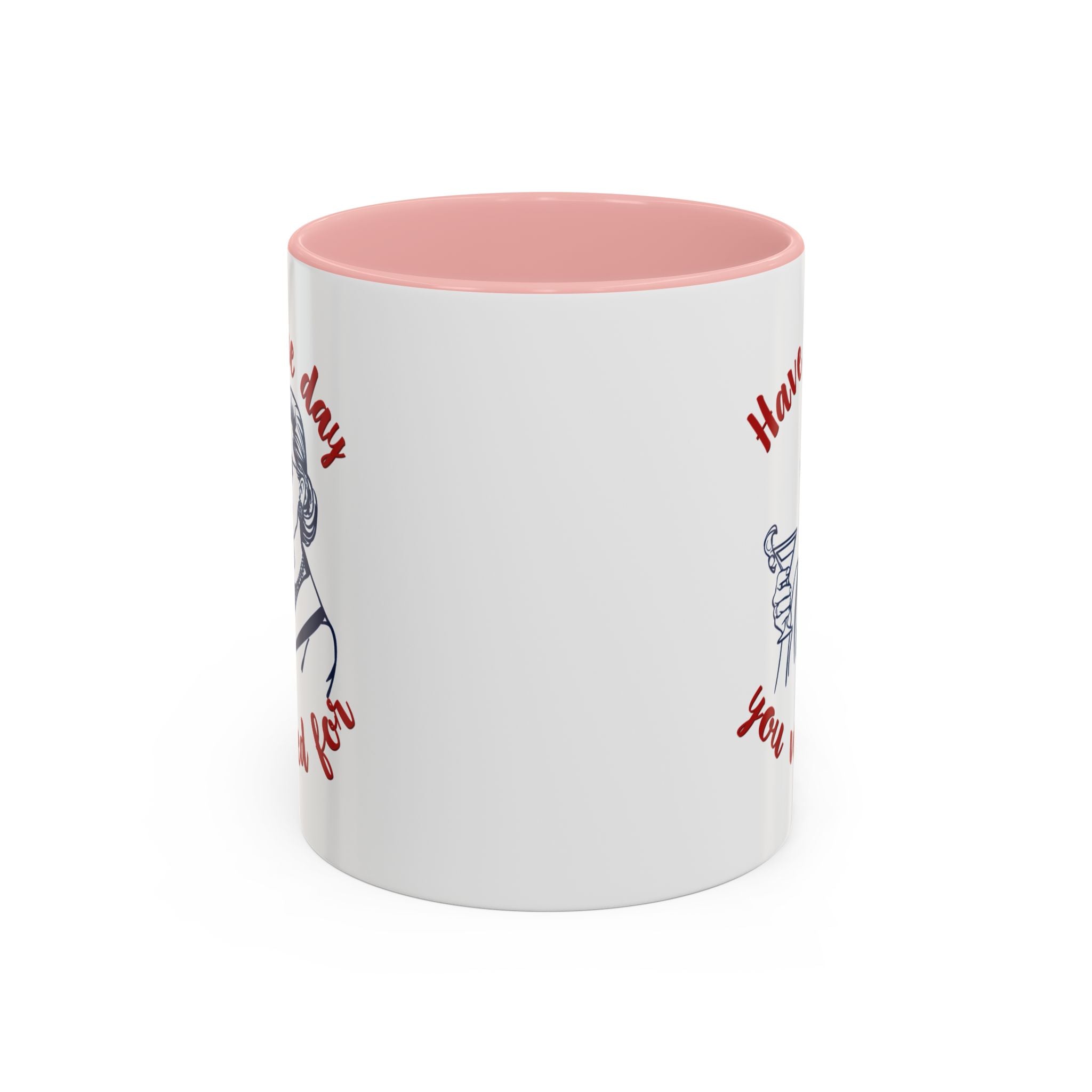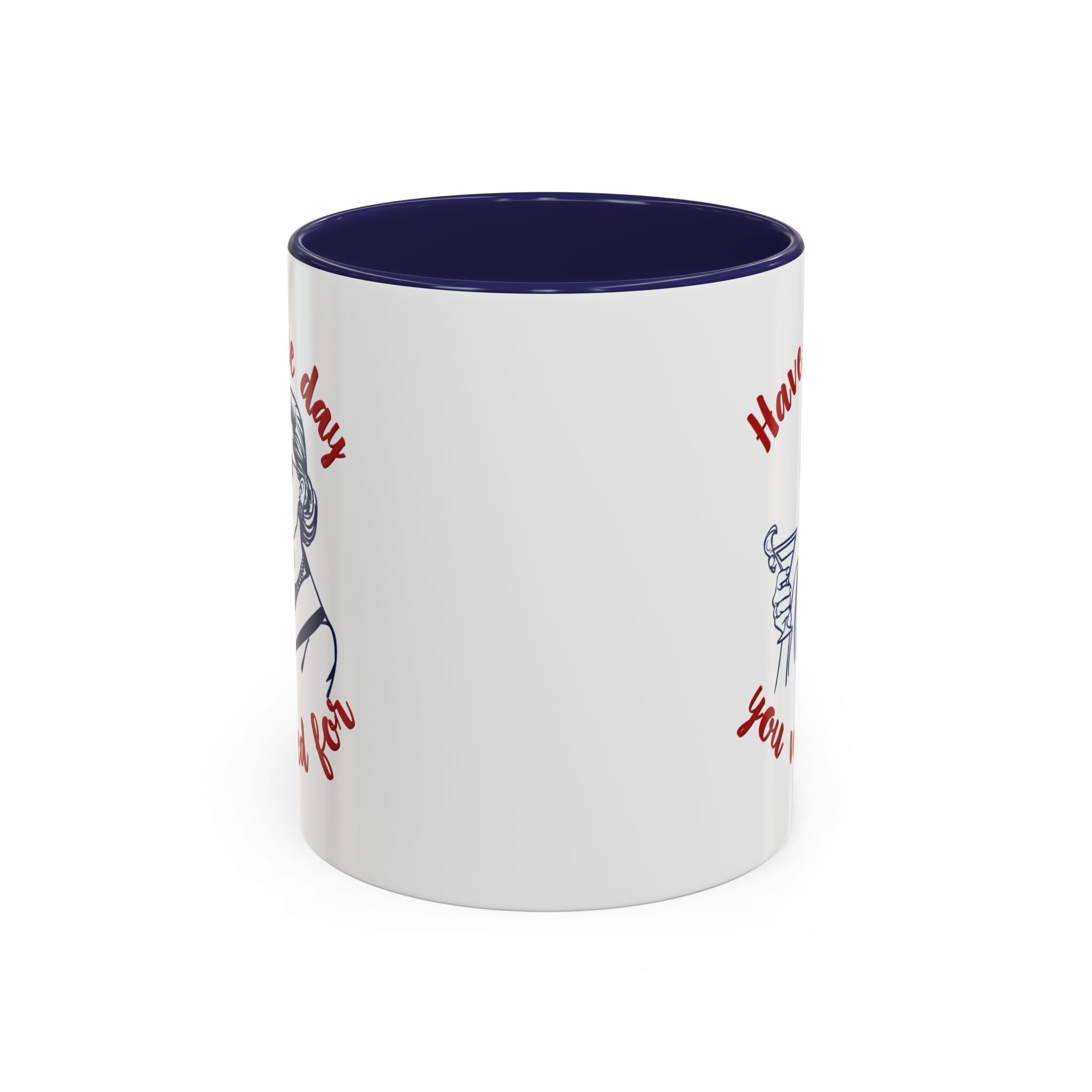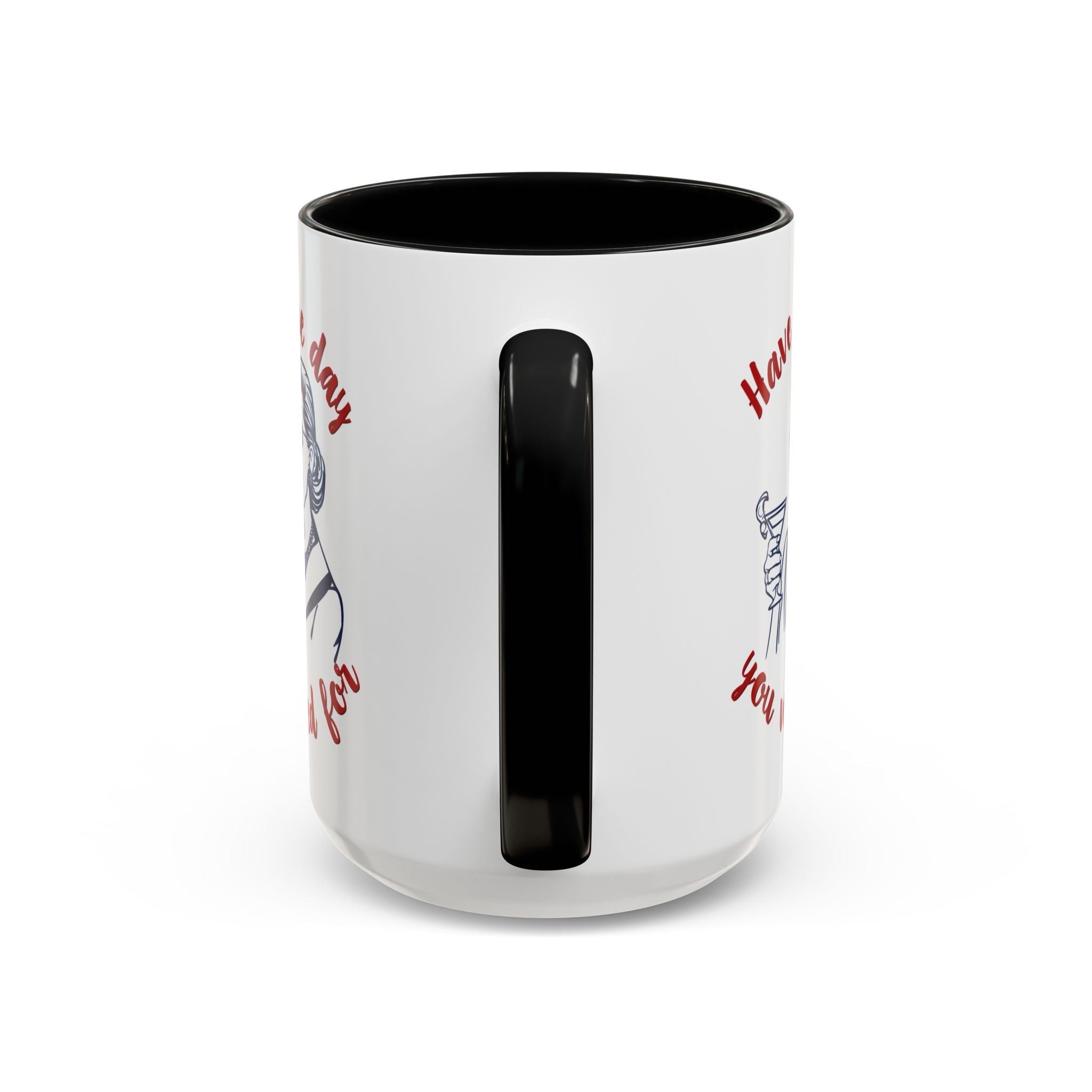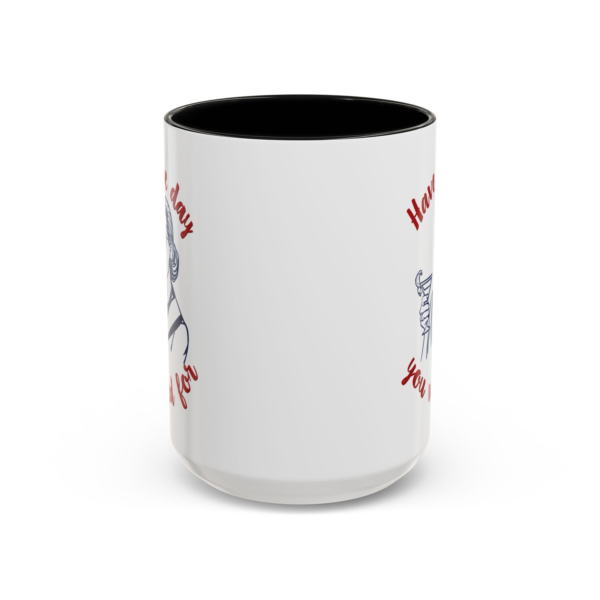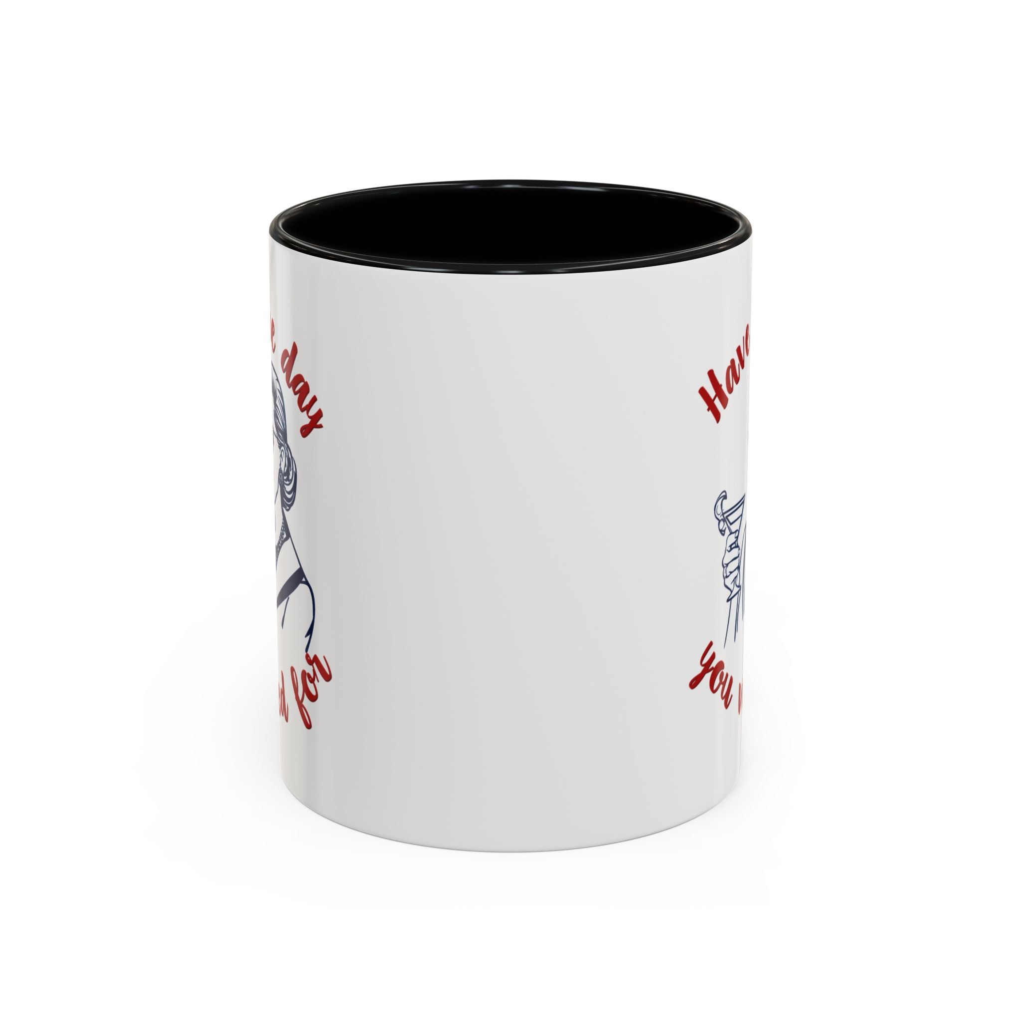 Start your morning with bold energy and a touch of wit with this “Have The Day You Voted For” accent mug. Featuring an illustration of Ruth Bader Ginsburg raising a cocktail, this red-handled and red-rimmed mug makes a perfect statement piece. The empowering design combines humor and politics, making it an ideal gift for feminists, activists, and coffee lovers who want their drinkware to inspire conversation. Perfect for coffee, tea, or any favorite beverage, this mug adds personality and power to every sip.