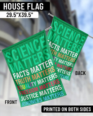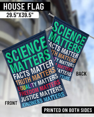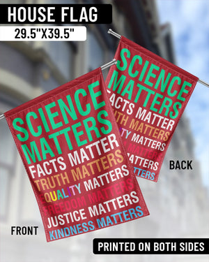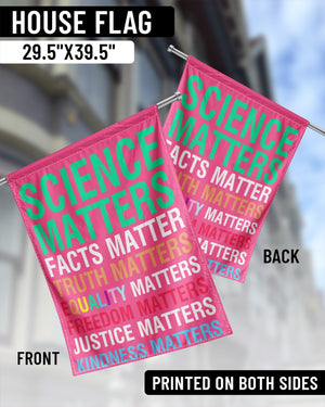 Embrace and display what truly matters with our "Values Matter Flag." Ideal for both indoor and outdoor settings, this flag boldly highlights essential social values: Science Matters, Facts Matter, Truth Matters, Equality Matters, Freedom Matters, Justice Matters, Kindness Matters. Crafted from high-quality, weather-resistant material, this flag is perfect for hanging in your yard, at demonstrations, or in public spaces. Show your support for truth and justice every day with a flag that proudly declares your commitment to progress and inclusion.