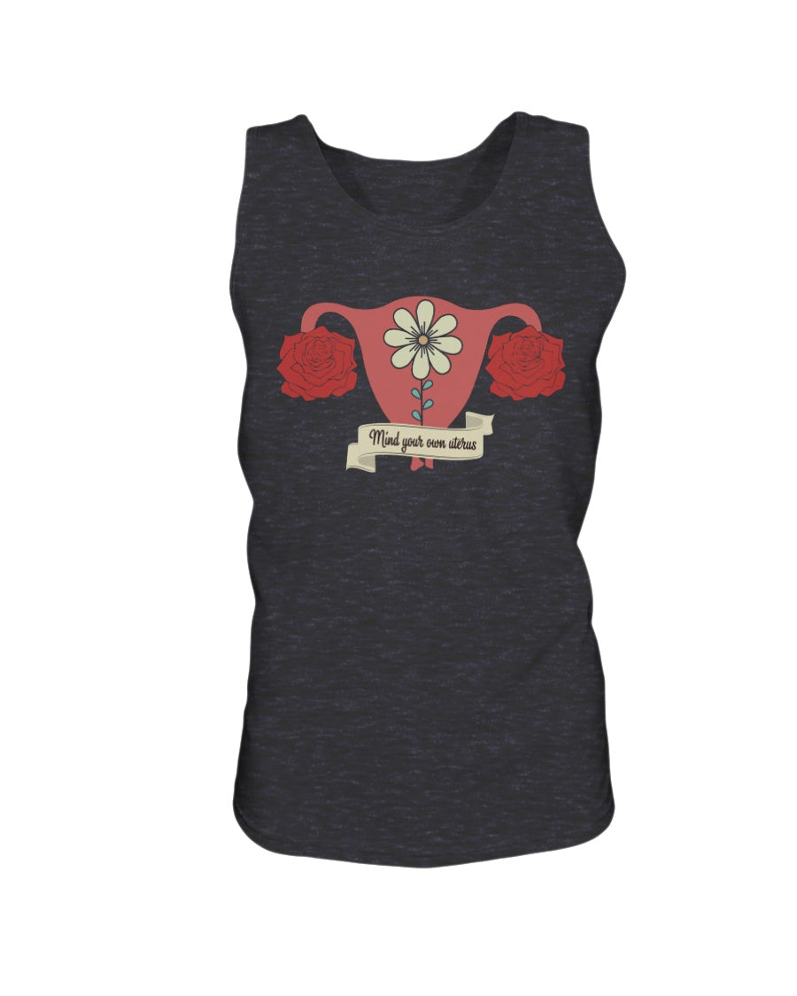 Stand up for women's rights with our Mind Your Own Uterus Flower Shirt. Featuring a beautifully illustrated uterus with floral elements and a bold "Mind Your Own Uterus" banner, this empowering design delivers a strong message about bodily autonomy and freedom of choice. Made from soft, breathable fabric, this tee is perfect for marches, protests, or daily wear to express your values. Make your voice heard with style and confidence.