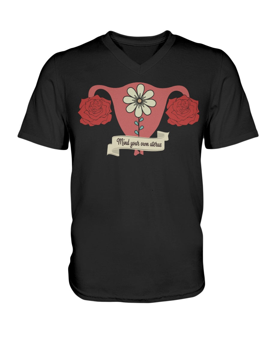 Stand up for women's rights with our Mind Your Own Uterus Flower Shirt. Featuring a beautifully illustrated uterus with floral elements and a bold "Mind Your Own Uterus" banner, this empowering design delivers a strong message about bodily autonomy and freedom of choice. Made from soft, breathable fabric, this tee is perfect for marches, protests, or daily wear to express your values. Make your voice heard with style and confidence.