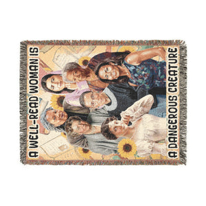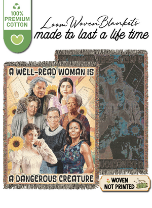 Celebrate powerful female voices with this inspiring woven blanket featuring iconic women from history and literature surrounding the bold quote: “A Well-Read Woman Is A Dangerous Creature.” Richly woven—not printed—this design honors wisdom, courage, and the strength that comes from knowledge. A perfect gift for book lovers, feminists, students, educators, and anyone who believes in the power of an educated woman.