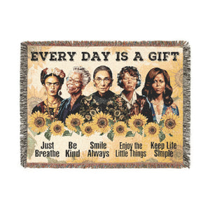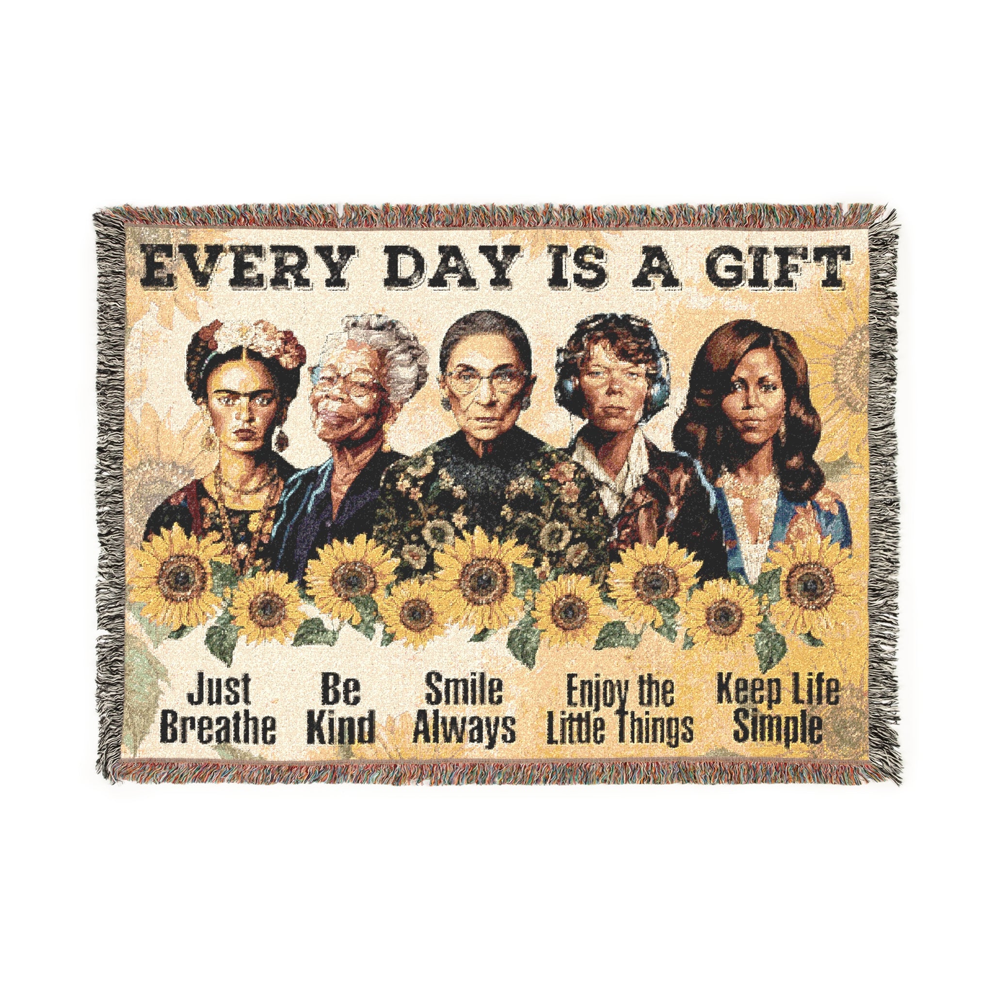 Celebrate strength, wisdom, and everyday gratitude with this Every Day Is A Gift Woven Blanket.