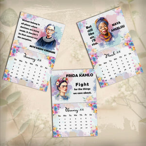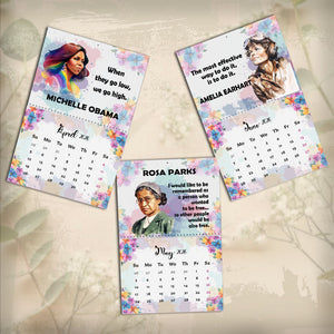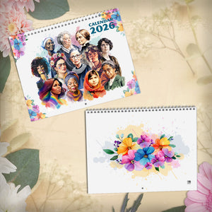 This 2026 wall calendar honors the voices and legacies of iconic women who changed history. Each month features a beautifully illustrated portrait and powerful quote from Ruth Bader Ginsburg, Frida Kahlo, Michelle Obama, Rosa Parks, Maya Angelou, Susan B. Anthony, Sojourner Truth, Elizabeth Cady Stanton, Amelia Earhart, Angela Davis, Alice Paul, and Malala Yousafzai. Quotes include “Women belong in all places where decisions are being made,” “But still like air, I’ll rise,” “When they go low, we go high,” and “I am no longer accepting the things I cannot change.” Designed with watercolor floral accents, this calendar is perfect for feminists, educators, students, and anyone inspired by justice, courage, and equality. A meaningful gift for 2026 that motivates all year long.