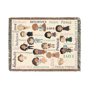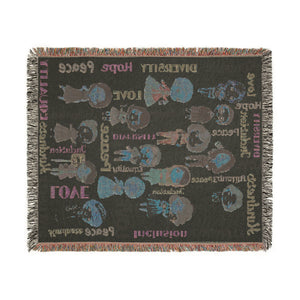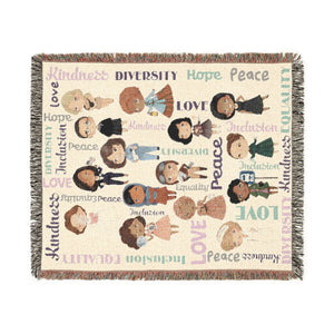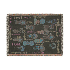 This woven blanket features adorable illustrations of historic women alongside powerful words like “Kindness,” “Equality,” “Diversity,” and “Peace.” A cozy and meaningful tribute to female empowerment, this design celebrates the values that shaped generations. Perfect for feminists, educators, and anyone who believes in justice and inclusion.