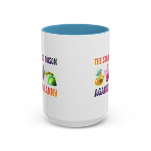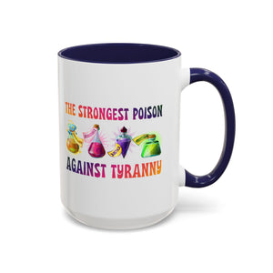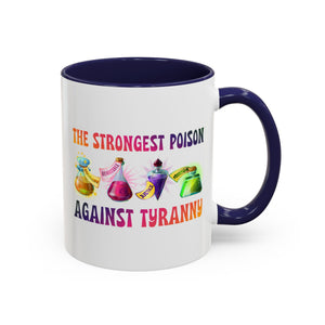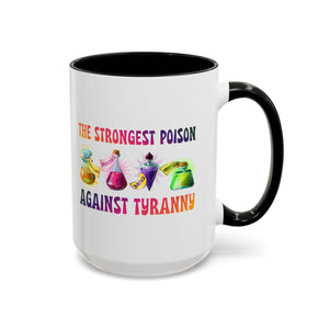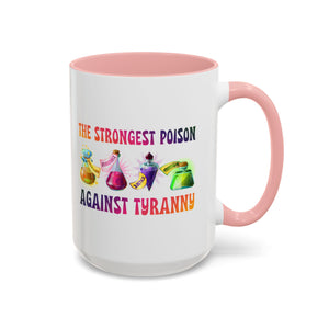 Colorful potion bottles labeled courage, resistance, justice, and freedom fight tyranny with bold rainbow text.