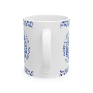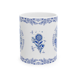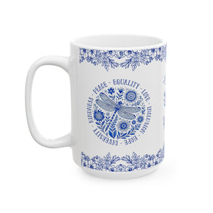 Sip your favorite drink with inspiration using this ceramic mug featuring a dragonfly surrounded by floral art and meaningful words: “Kindness – Peace – Equality – Love – Inclusion – Hope – Diversity.” Designed in elegant blue botanical style, this mug is a daily reminder of unity and compassion. Perfect for coffee, tea, or hot cocoa, it makes a thoughtful gift for feminists, activists, and anyone who believes in spreading kindness and equality. Dishwasher and microwave safe, it’s both practical and empowering.
