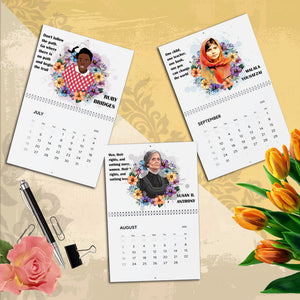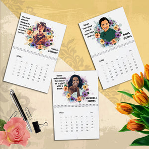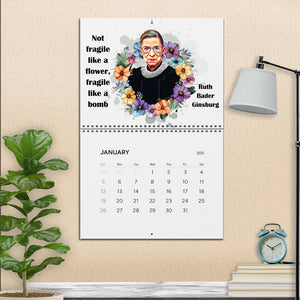 The Women Who Make History Wall Calendar 2025. Ruth Bader Ginsburg, Frida Kahlo, Maya Angelou, Amelia Earhart, Michelle Obama, Rosa Parks, Ruby Bridges, Susan B. Anthony, Malala Yousafzai, Marie Curie, Eleanor Roosevelt, Harriet Tubman. Not Fragile Like A Flower, Fragile Like A Bomb. They Whispered to Her You Can Not Withstand The Storm She Whispered Back I Am The Storm. But still like air, i'll rise. The most difficult thing is the decision to act, the rest is merely tenacity. Never Underestimate The Power Of A Girl With A Book. Speak Your Mind Even if Your Voice Shakes. Don't follow the path. Go where there is no path and begin the trail. Men, their rights, and nothing more; women, their rights, and nothing less. One child, one teacher, one book, one pen can change the world. Nothing in life is to be feared, it is only to be understood. Now is the time to understand more, so that we may fear less. No one can make you feel inferior without your consent. Every great dream begins with a dreamer. Always remember, you have within you the strength, the patience, and the passion to reach for the stars to change the world.