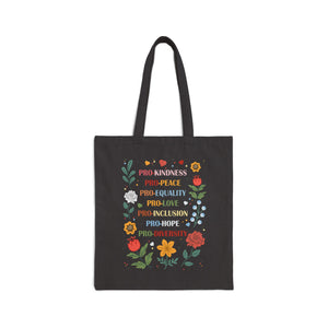 Show the world what you stand for with this beautiful floral-themed tote bag featuring powerful affirmations: Pro-Kindness, Pro-Peace, Pro-Equality, Pro-Love, Pro-Inclusion, Pro-Hope, Pro-Diversity. Surrounded by colorful hearts and hand-drawn flowers, this design is a celebration of compassion and unity. It’s perfect for everyday use, from shopping and school to activism and gifting. Made from sturdy fabric with strong handles—carry your values in style and purpose.