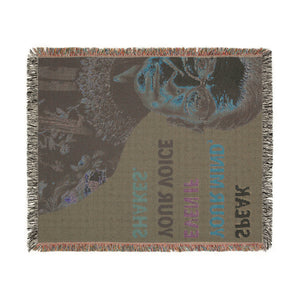 This woven—not printed—blanket features an empowering portrait of Ruth Bader Ginsburg with the bold message: “Speak your mind, even if your voice shakes.”