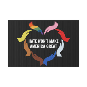Stand for unity, love, and equality with this powerful “Hate Won’t Make America Great” yard sign. The design features a heart shape made of diverse, colorful hands—each representing different races, identities, and communities, including a hand in rainbow LGBTQ+ colors. Display it proudly in your front yard, garden, or office lawn to send a clear message: inclusion makes us stronger. Weather-resistant and fade-proof, this sign is made to last and speak volumes.