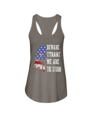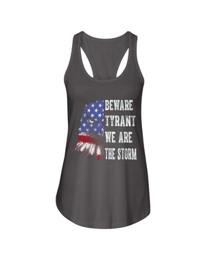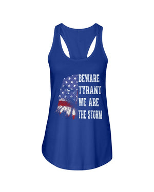 This shirt features a fierce eagle design blended with the American flag, paired with the powerful text: “BEWARE TYRANT WE ARE THE STORM.” A bold patriotic and activist statement, this shirt is perfect for those who stand against oppression and fight for freedom. Ideal for rallies, protests, or everyday wear, it symbolizes strength, unity, and resilience. A great gift for strong voices who believe in justice and democracy.