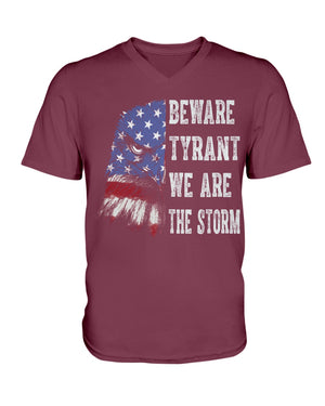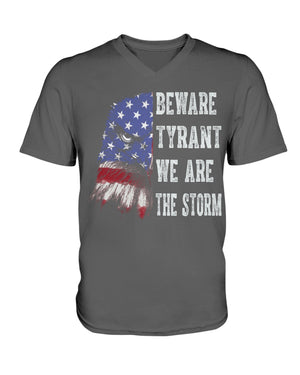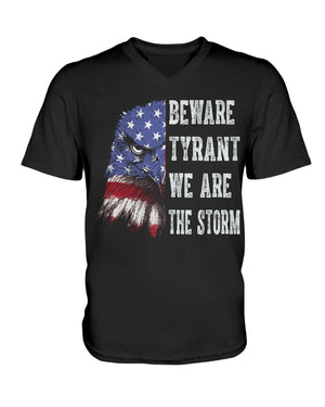 This shirt features a fierce eagle design blended with the American flag, paired with the powerful text: “BEWARE TYRANT WE ARE THE STORM.” A bold patriotic and activist statement, this shirt is perfect for those who stand against oppression and fight for freedom. Ideal for rallies, protests, or everyday wear, it symbolizes strength, unity, and resilience. A great gift for strong voices who believe in justice and democracy.