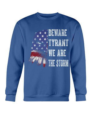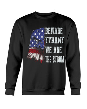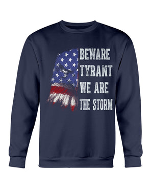 This shirt features a fierce eagle design blended with the American flag, paired with the powerful text: “BEWARE TYRANT WE ARE THE STORM.” A bold patriotic and activist statement, this shirt is perfect for those who stand against oppression and fight for freedom. Ideal for rallies, protests, or everyday wear, it symbolizes strength, unity, and resilience. A great gift for strong voices who believe in justice and democracy.