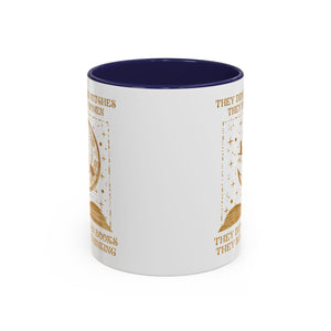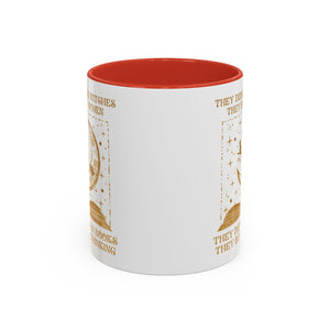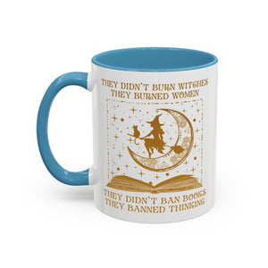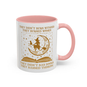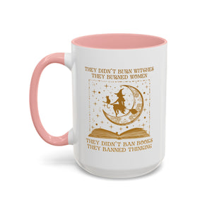 They Didn't Burn Witches They Burned Women They Didn't Ban Books They Banned Thinking Accent Mug. Banned Books, Book and witch, Gift for Witches, Gift for Halloween, I love book, Gift for reader, book lover, book witches and moon.