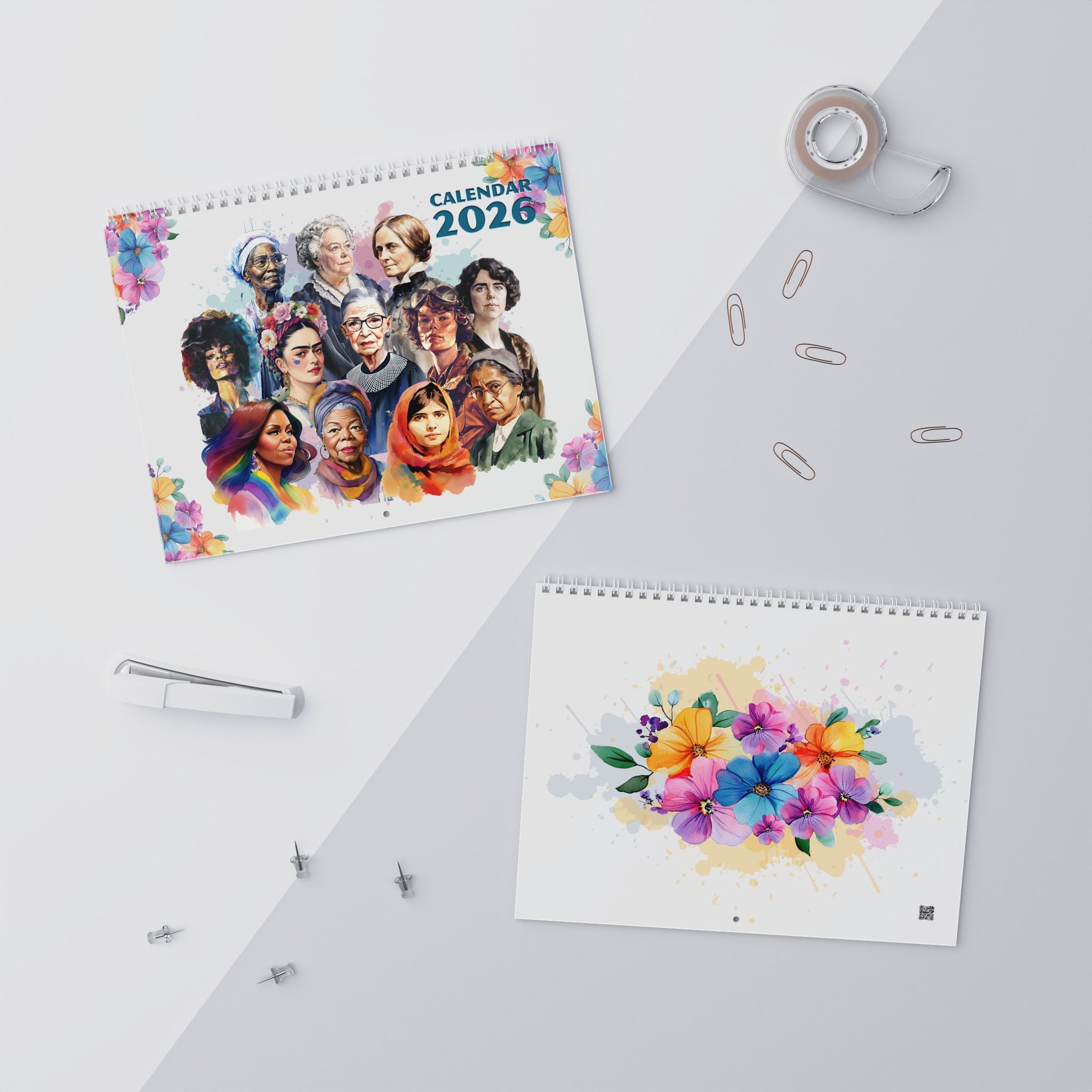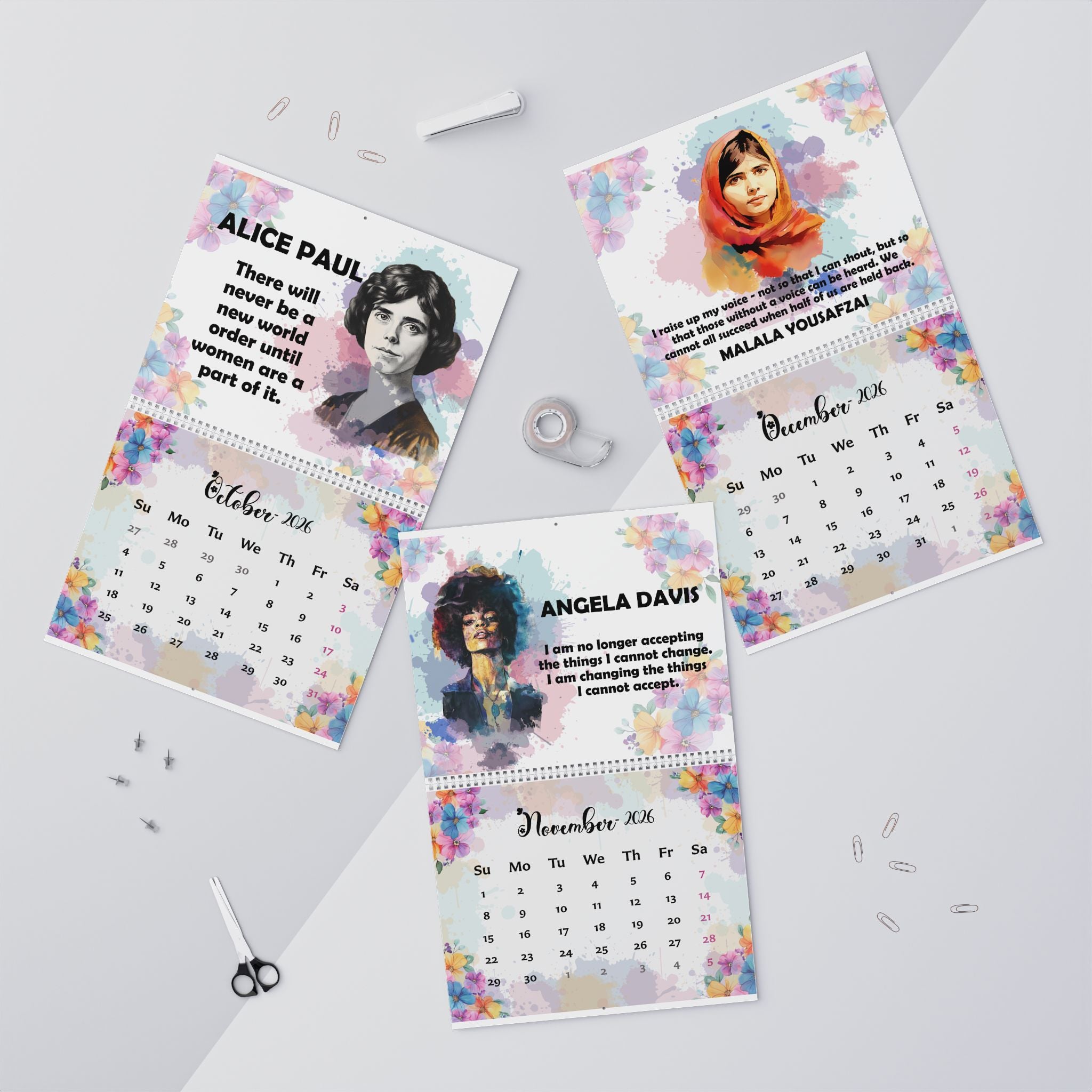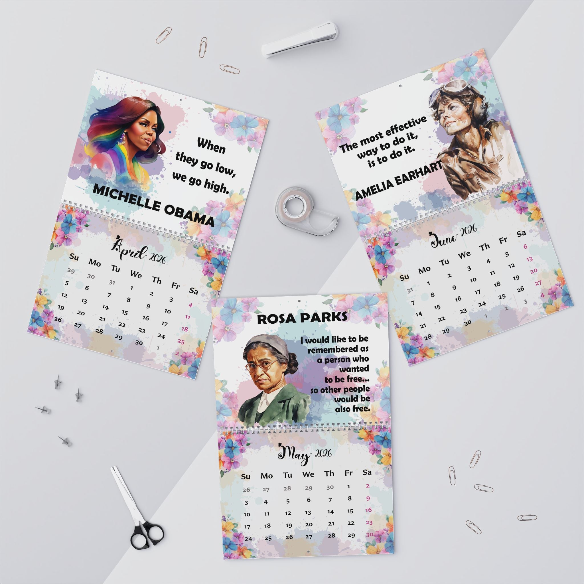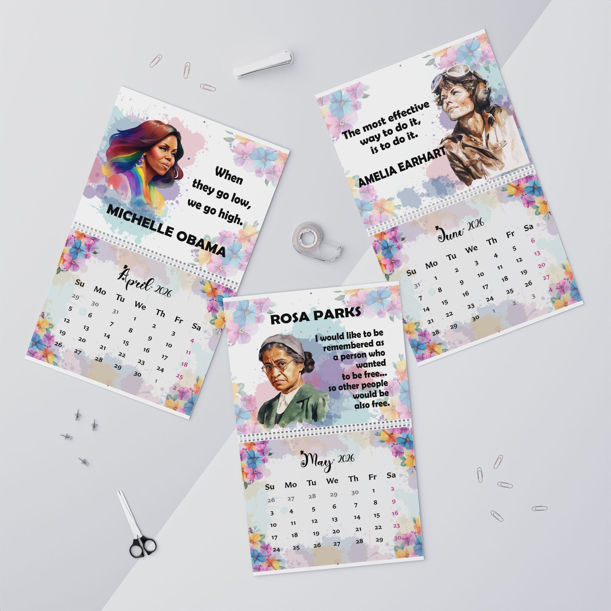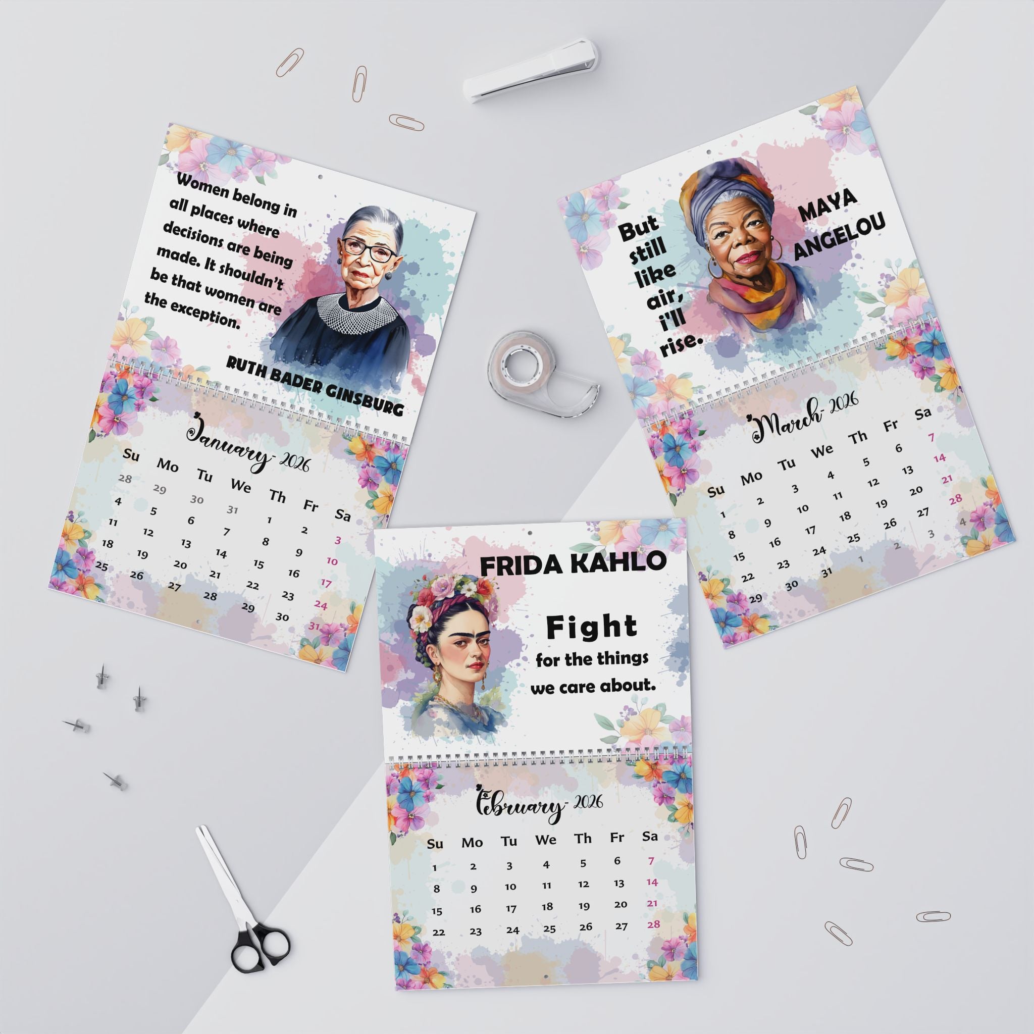 This 2026 wall calendar honors the voices and legacies of iconic women who changed history. Each month features a beautifully illustrated portrait and powerful quote from Ruth Bader Ginsburg, Frida Kahlo, Michelle Obama, Rosa Parks, Maya Angelou, Susan B. Anthony, Sojourner Truth, Elizabeth Cady Stanton, Amelia Earhart, Angela Davis, Alice Paul, and Malala Yousafzai. Quotes include “Women belong in all places where decisions are being made,” “But still like air, I’ll rise,” “When they go low, we go high,” and “I am no longer accepting the things I cannot change.” Designed with watercolor floral accents, this calendar is perfect for feminists, educators, students, and anyone inspired by justice, courage, and equality. A meaningful gift for 2026 that motivates all year long.