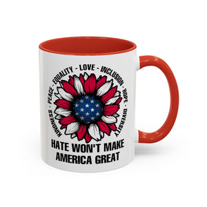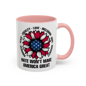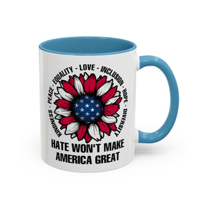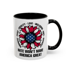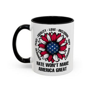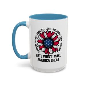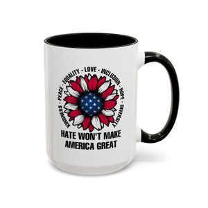 Hate Won't Make America Great Kindness Peace Equality Love Inclusion Hope Diversity Accent Mug.