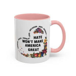 Hate Won't Make America Great Accent Mug.