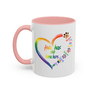 Hate Has No Home Here Dog Lover Accent Mug. Kindness Equality Inclusion Diversity Love. Dog mug, I love dogs, Gift for Dog Lover.