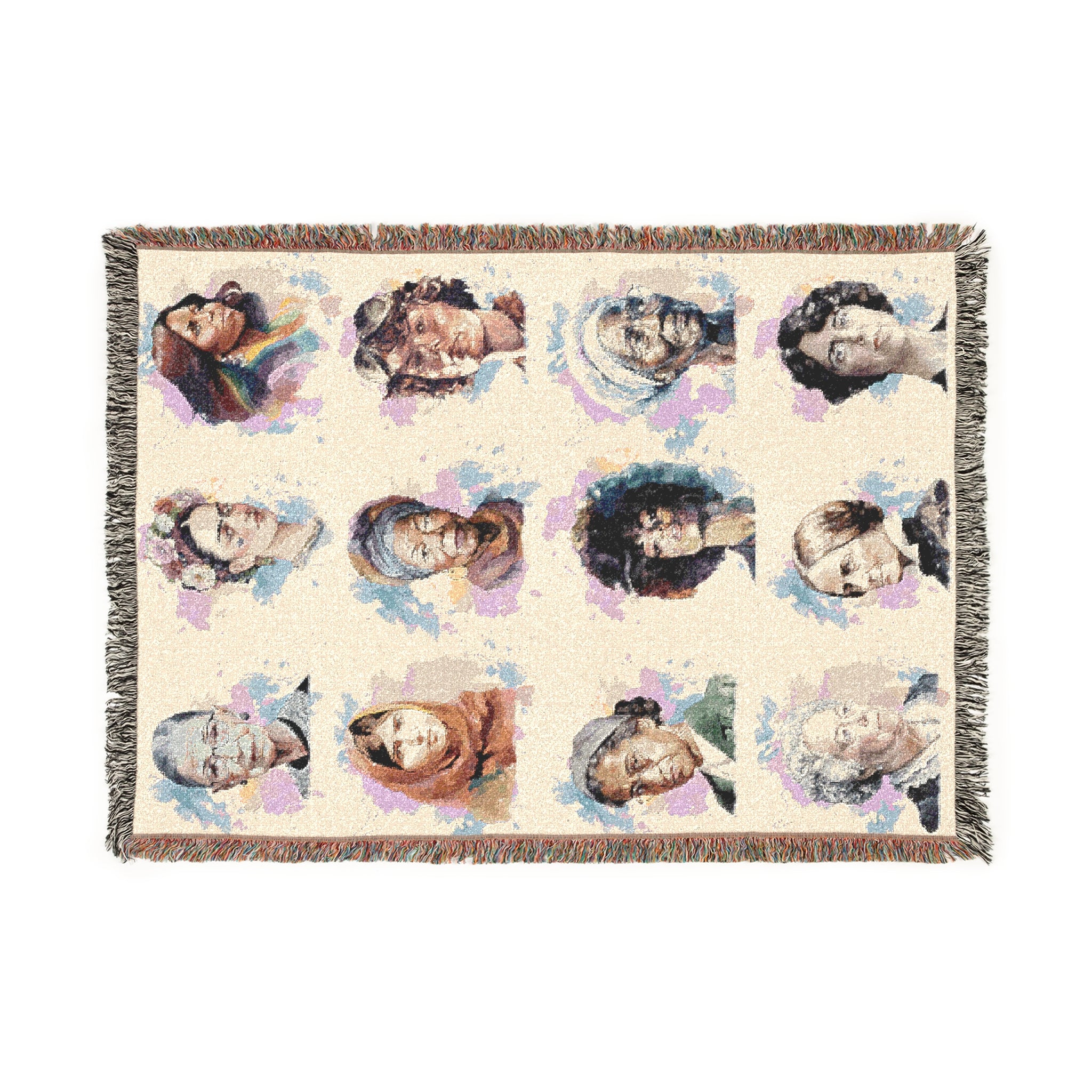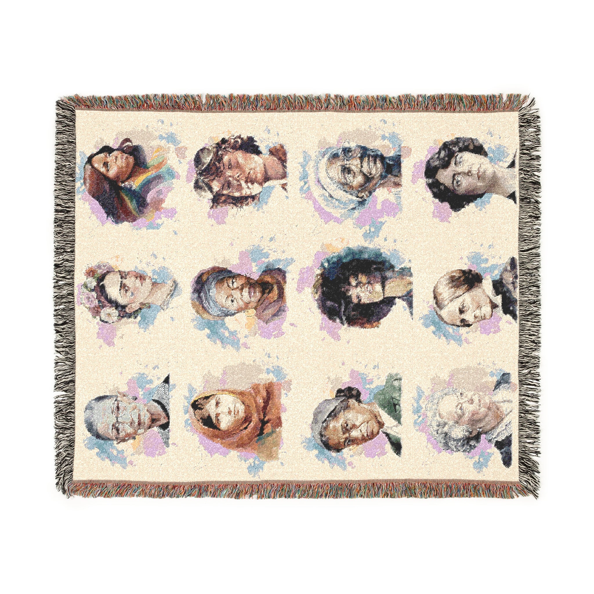 This woven blanket showcases watercolor-style portraits of 12 iconic women throughout history—Ruth Bader Ginsburg, Frida Kahlo, Michelle Obama, Malala Yousafzai, Harriet Tubman, and more. A tribute to strength, justice, and progress, it’s perfect for those who value equality and inspiration in every thread.