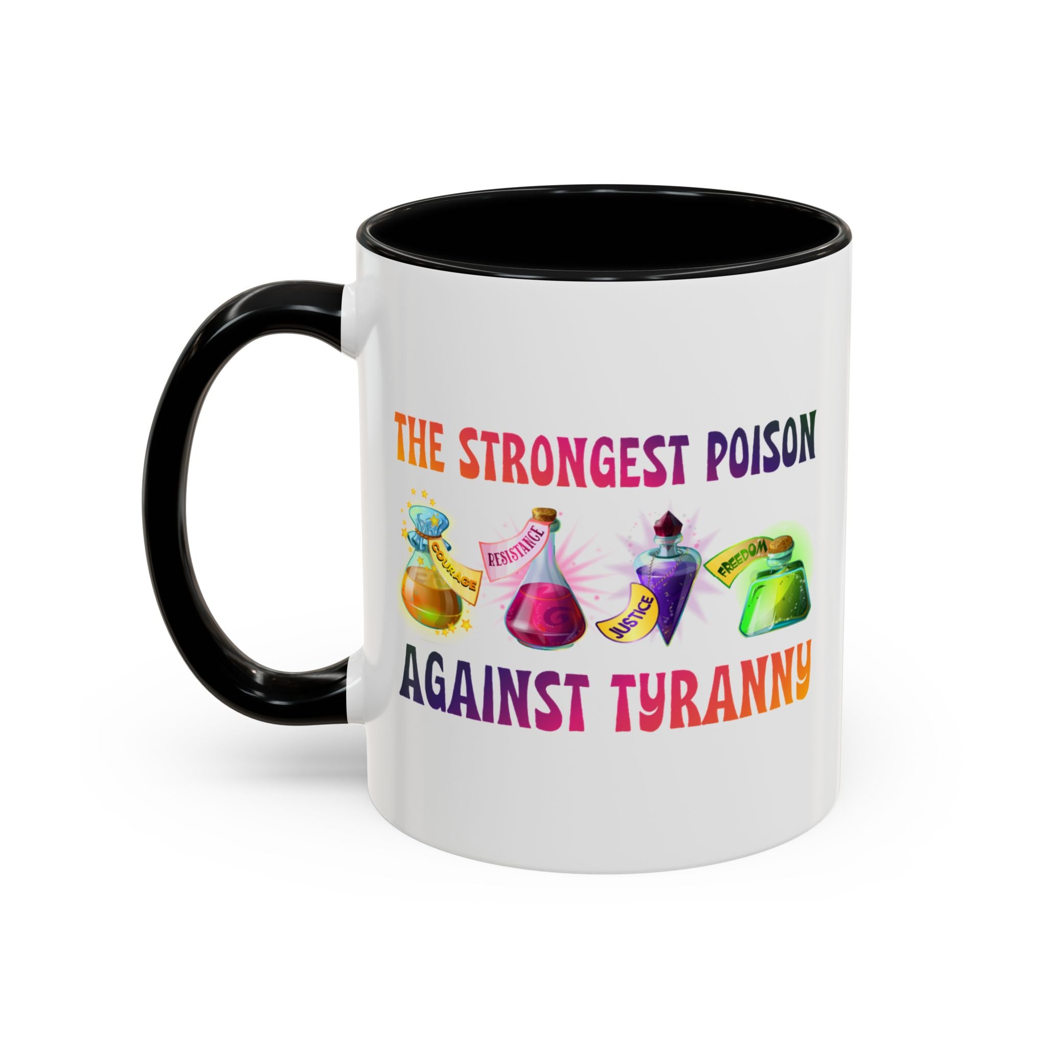 Colorful potion bottles labeled courage, resistance, justice, and freedom fight tyranny with bold rainbow text.