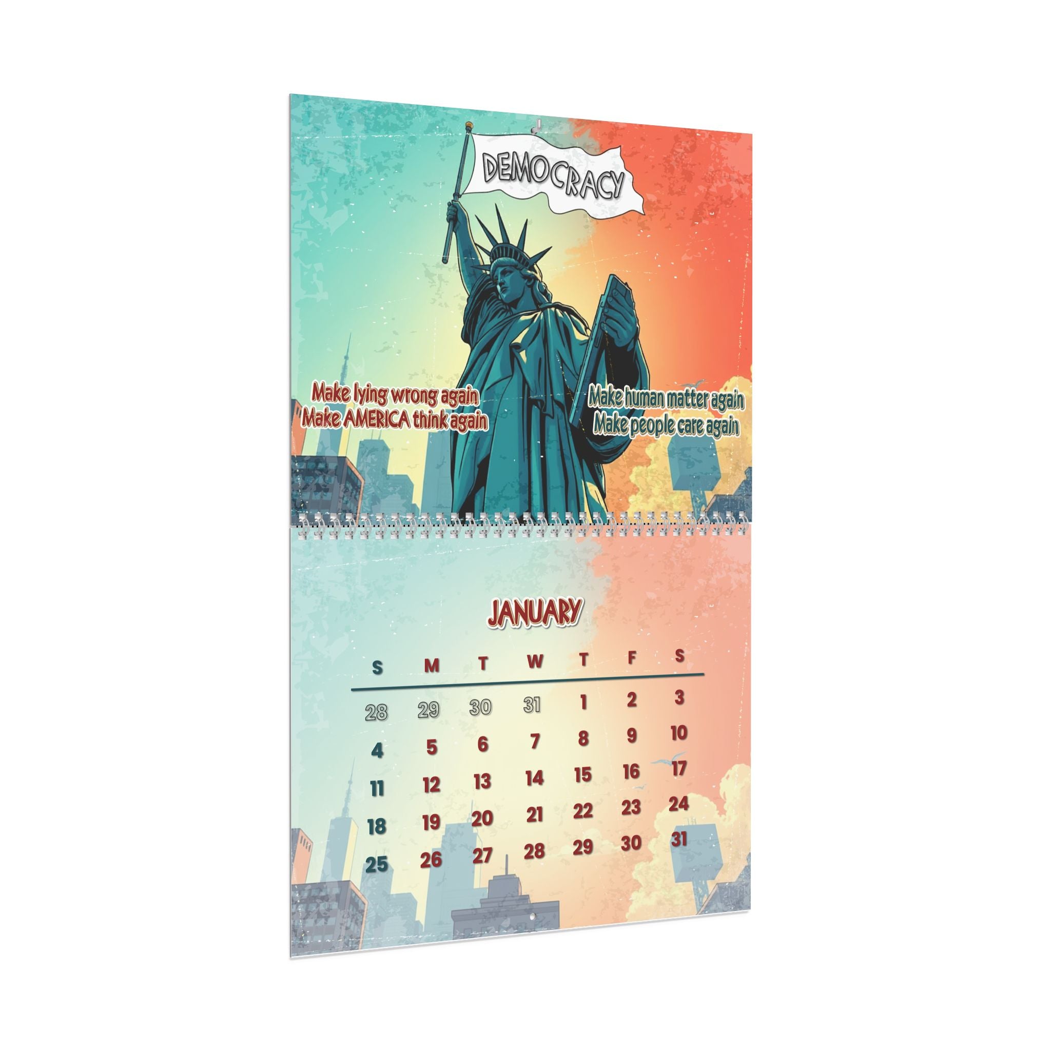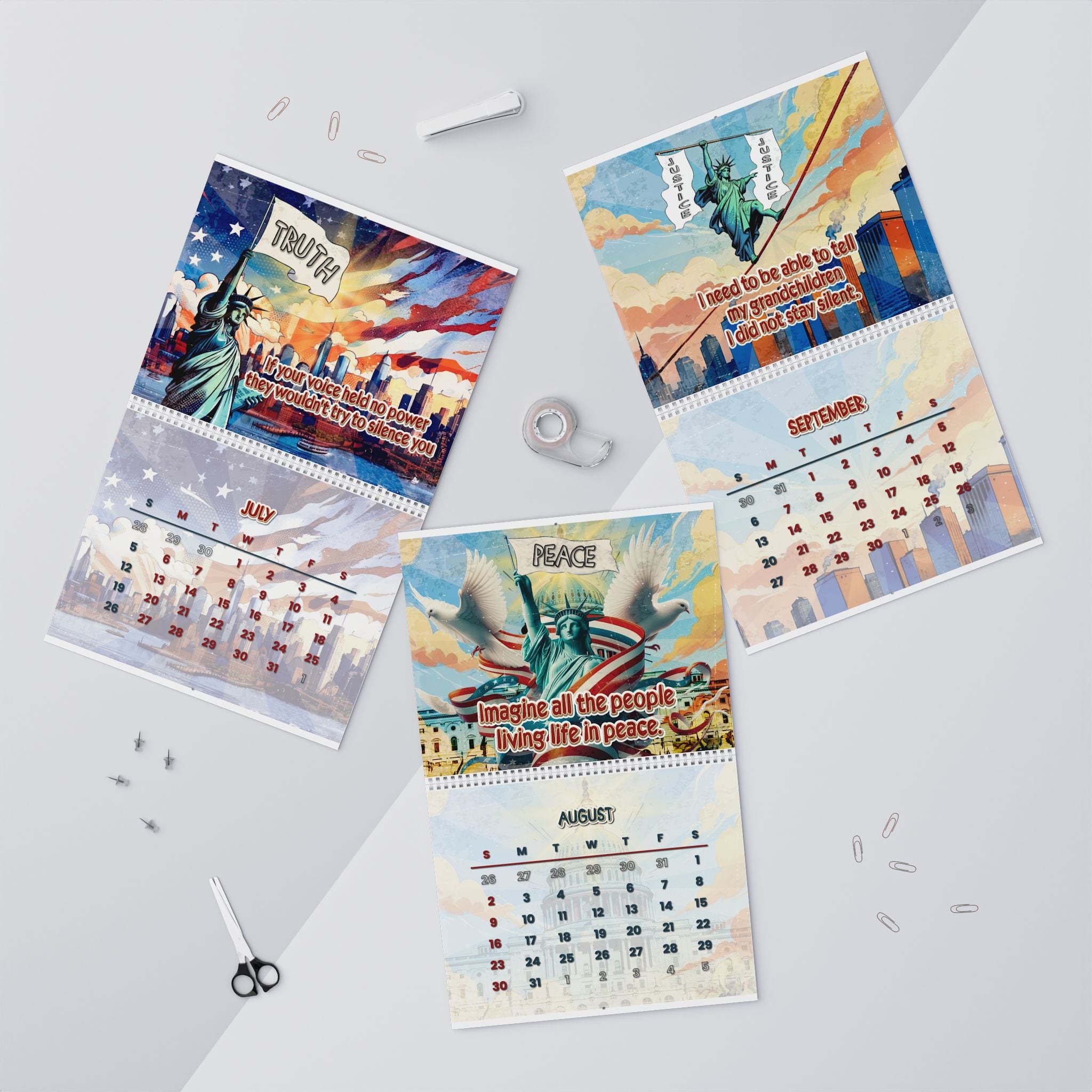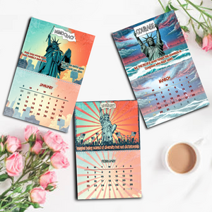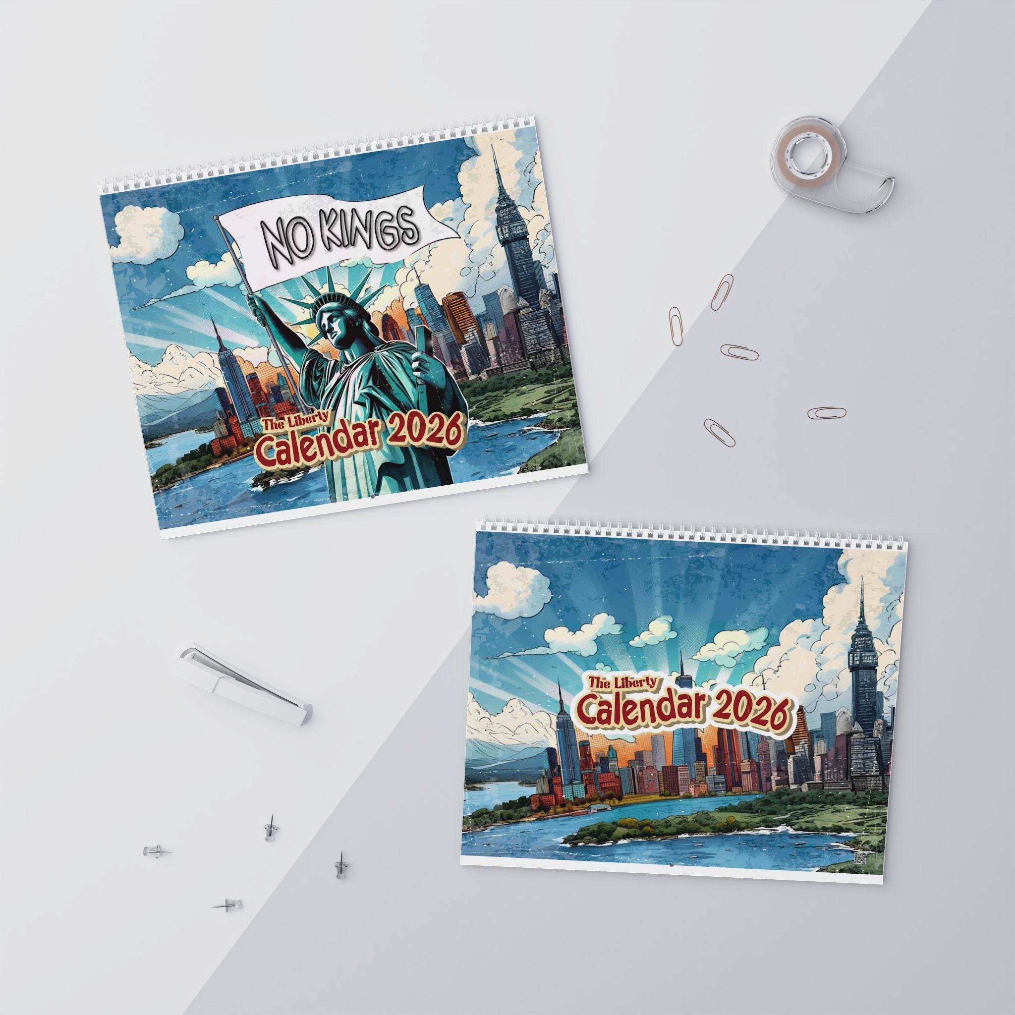 This The Liberty No Kings Wall Calendar 2026 features bold artwork of the Statue of Liberty holding banners with inspiring messages throughout the year. The design highlights key text such as “NO KINGS”, “Democracy”, “Make Humans Matter Again”, “Courage”, “Diversity”, “Unity – We Are All Grandchildren Of Immigrants”, “Hope – Light Will Always Find The Horizon”, “Peace – Imagine All The People Living Life In Peace”, “Resist – When Injustice Becomes Law, Resistance Becomes Duty”, and “Freedom – She Doesn’t Bow To Kings, She Stands For Freedom.” Perfect for those who love liberty, equality, and empowerment messages. Ideal as a meaningful gift for women, activists, educators, and history lovers.