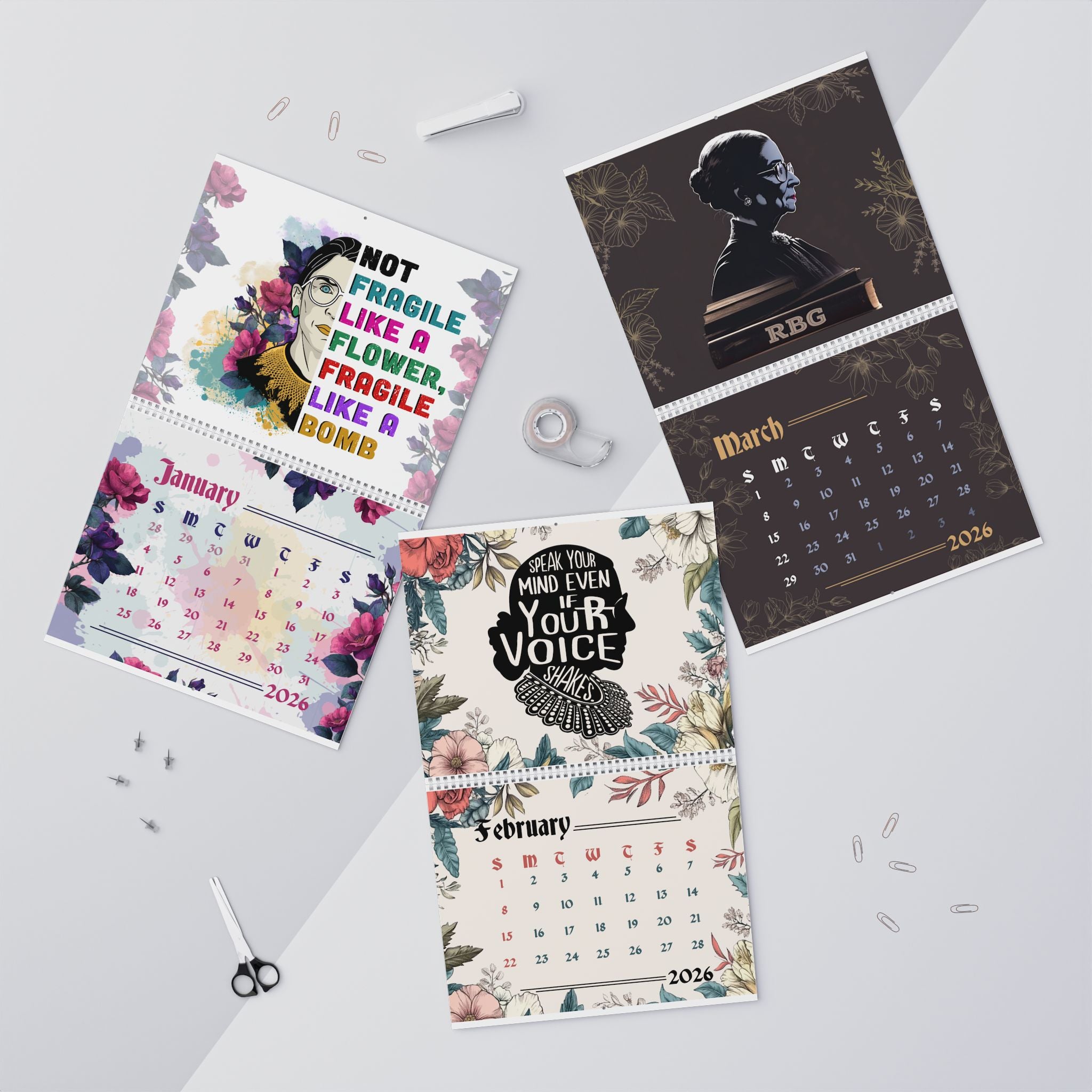 Honor the legacy of a true icon of justice with the Ruth Bader Ginsburg 2026 Wall Calendar. Each month features stunning artwork inspired by RBG’s powerful words and unwavering spirit — from “Women belong in all places where decisions are being made” to “When injustice becomes law, resistance becomes duty.”